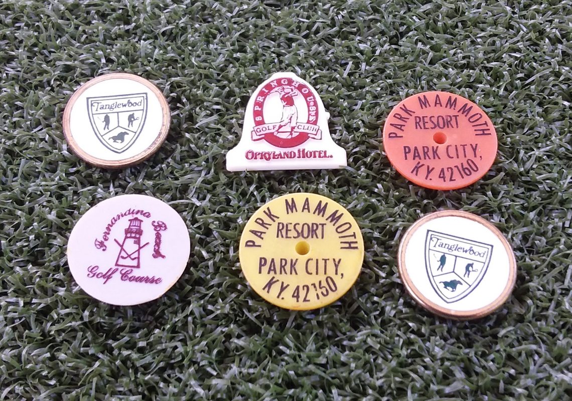 Perhaps, it was because when I first started playing, a ball marker was attached to every golf glove I brought, then sometime in the early 70s, I started using a special coin to mark my ball. Whatever the case, when I started going thru my old bags, there was only a few ball markers found deep inside one pocket of an old Burton Golf Company bag.